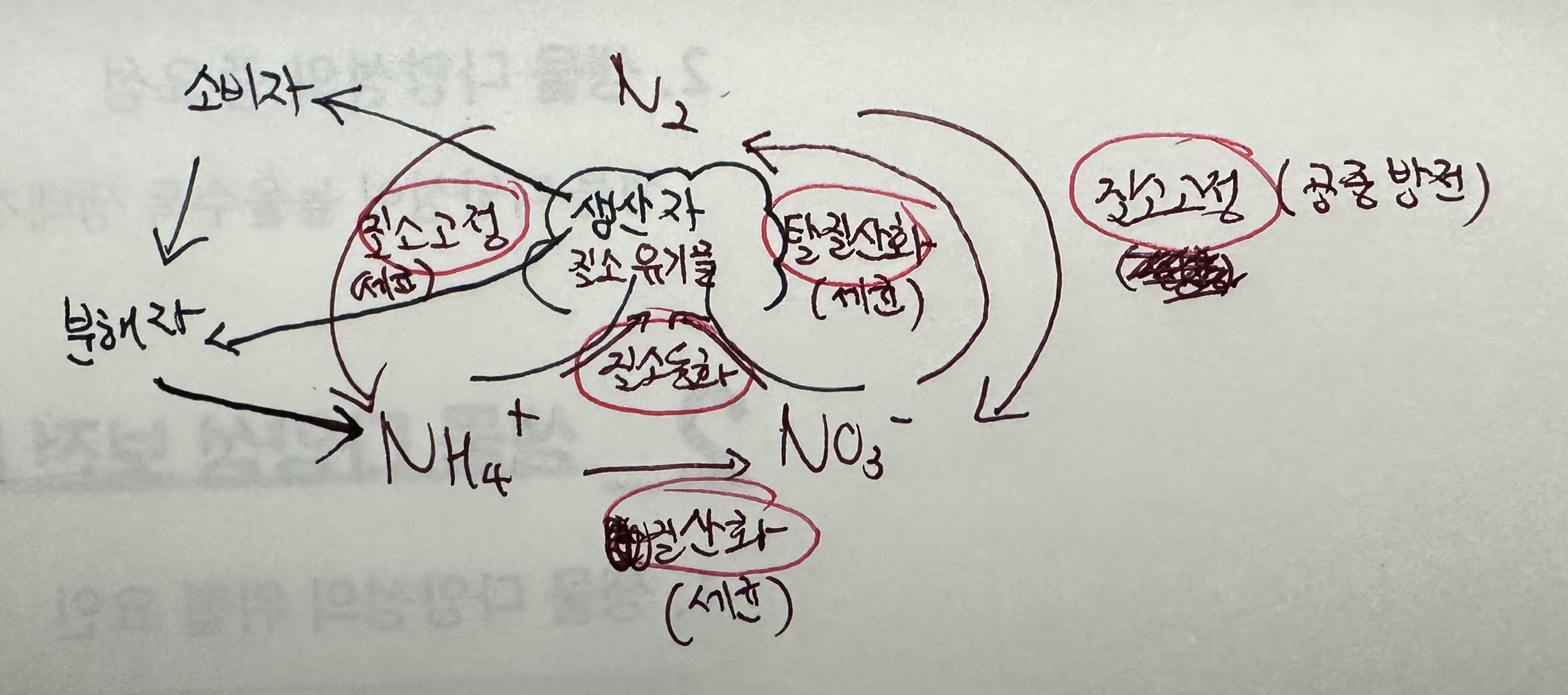 - 질소 고정 : N2 => NH4+ or NO3-