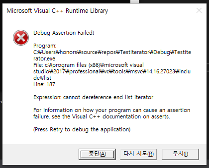 c++ 에서 map의 iterator를 사용하다가 'Cannot dereference end list iterator' 오류를 맞닥뜨렸다.