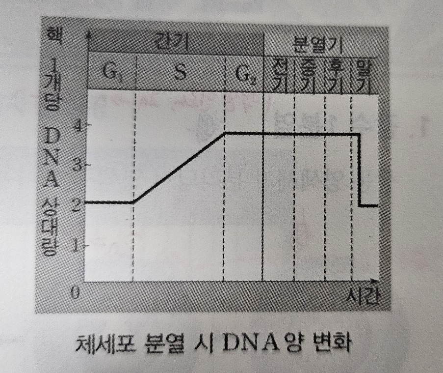 - 모세포(G1기)와 딸세포의 염색체 수 및 DNA 양이 같음