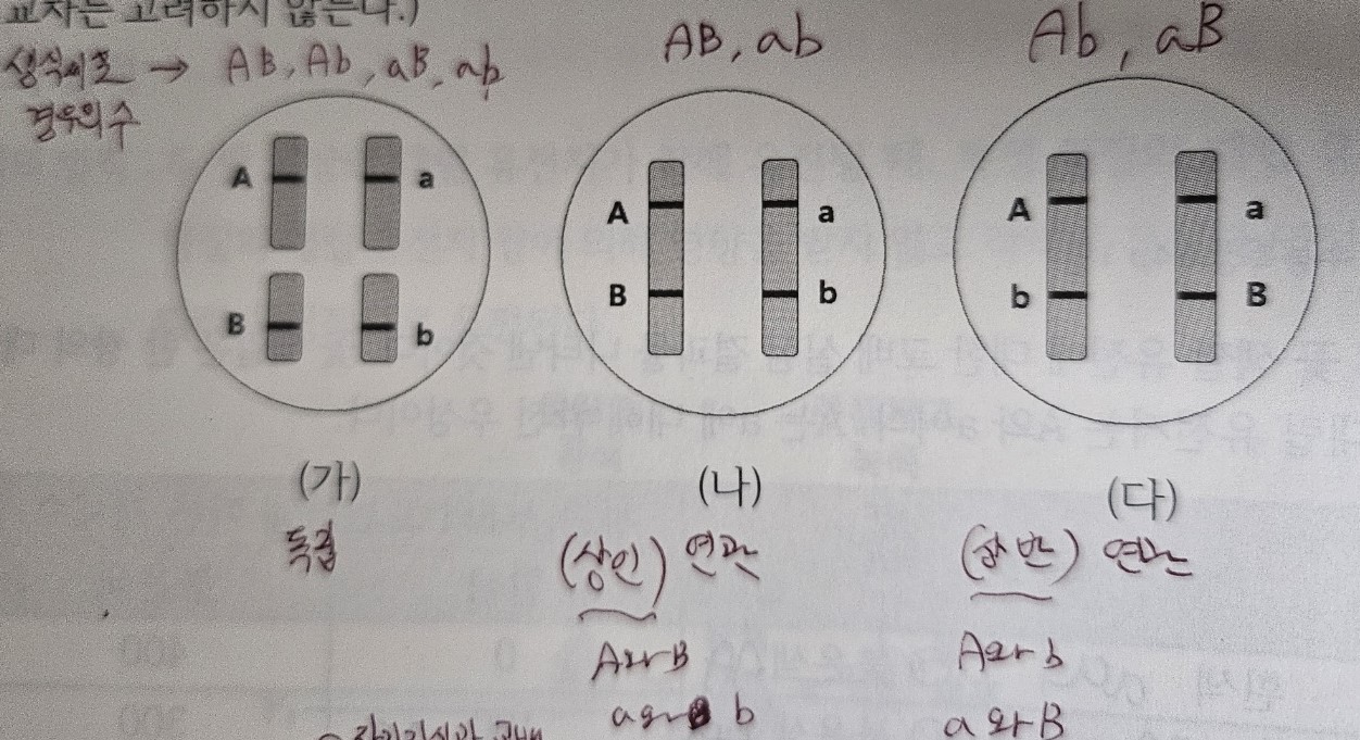 - 상반 연관: 우성 유전자와 열성 유전자가 함께 연관