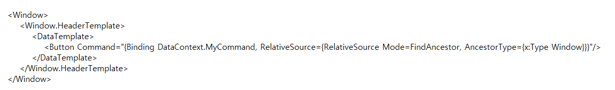Command가 부모의 DataContext에 존재하기 때문이다. 그래서 Command를 찾기 위한 대상을 변경해주어야 한다.